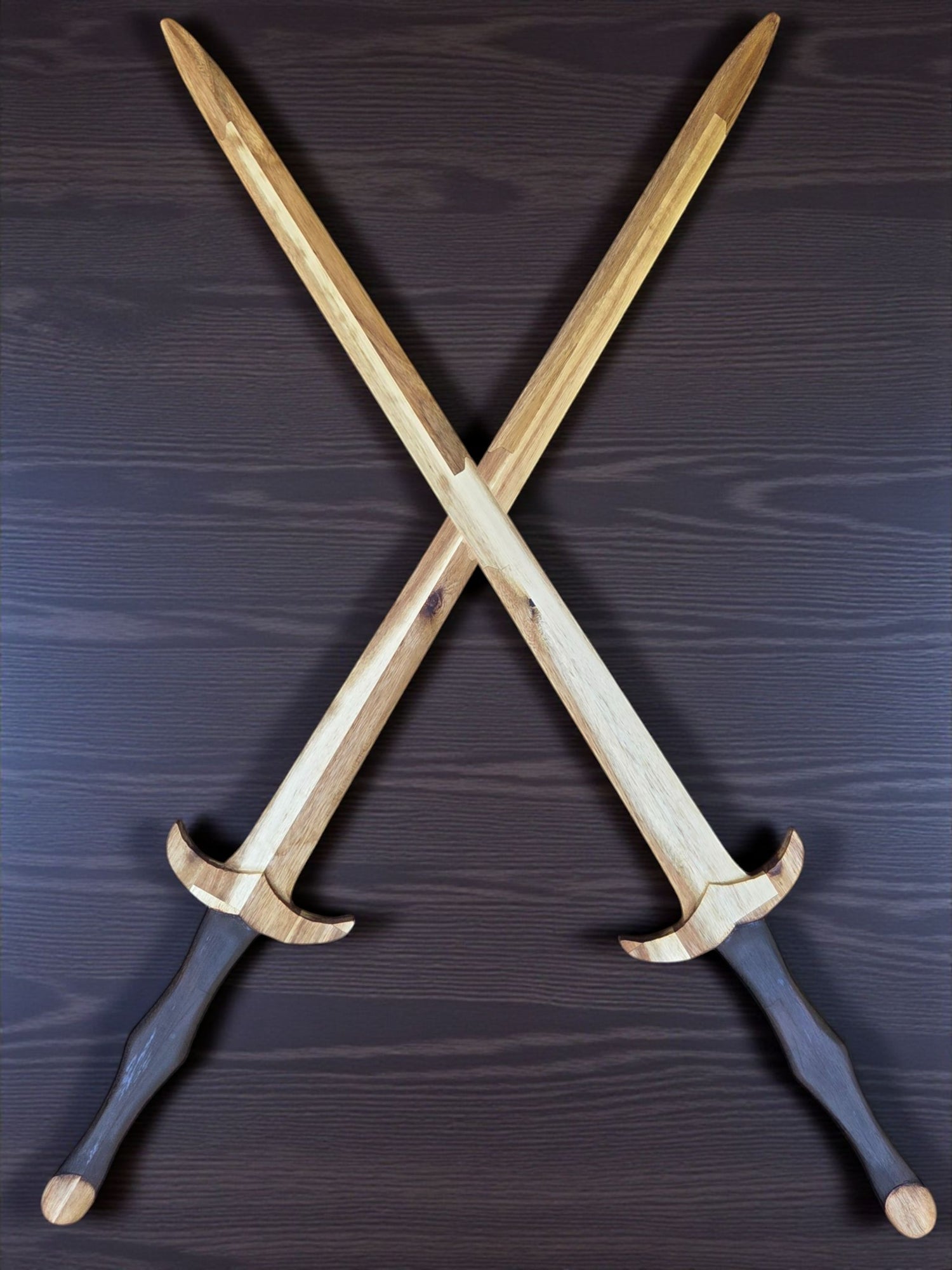 Behold, the enchanting Acacia Edge Glued Wood Sword with its charmingly burnt handle, a true testament to the art of hand-carving! This beautiful piece is no longer available in our treasure trove, but fear not, intrepid adventurer! If this exquisite sword, or something akin to its splendor, has captured your imagination, we invite you to reach out to us. We are ready to craft a custom order just for you, ensuring that your quest for the perfect piece is met with success.