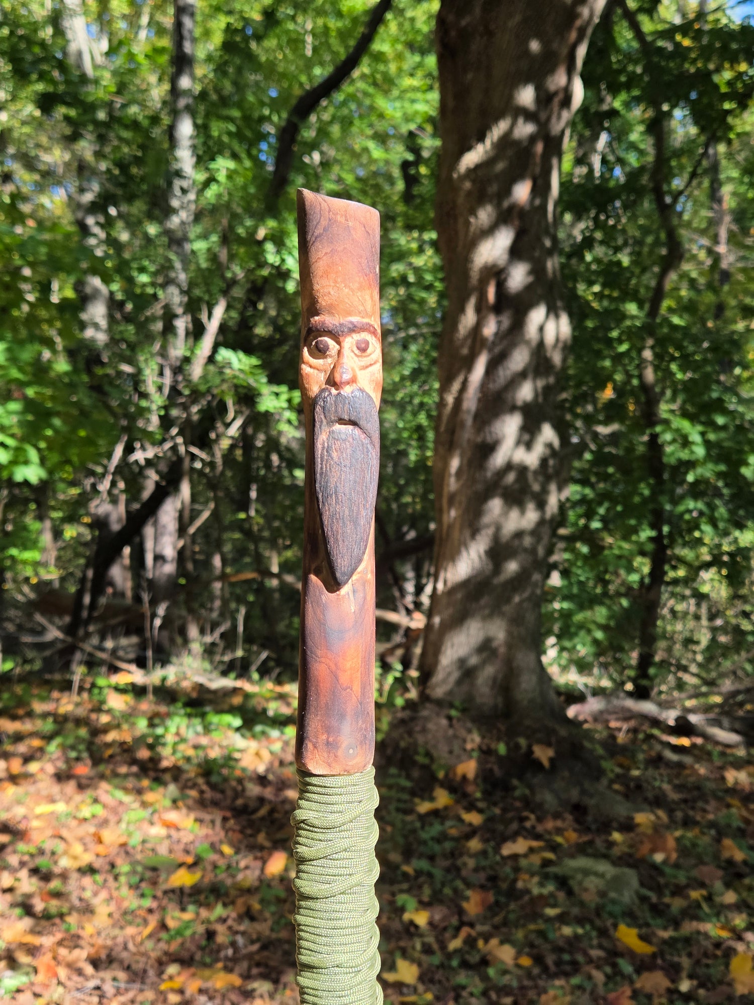 Check out this whimsical walking stick, lovingly whittled from a fallen tree limb! Standing tall at 5 feet, it's already found a new home. But fear not, more enchanting sticks are on their way—stay tuned!